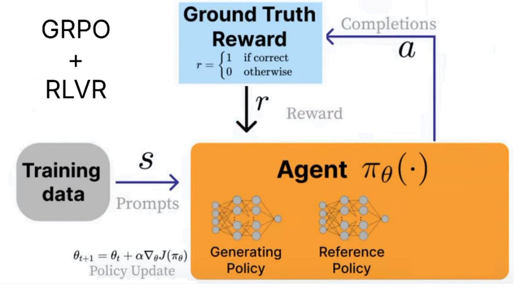 这意味着 GRPO 非常高效。你可以随时停止。这份指南值得一读。我们需要训练一个 agent 来针对某个问题(状态)生成人类认为更有用的输出。地址)→ +1